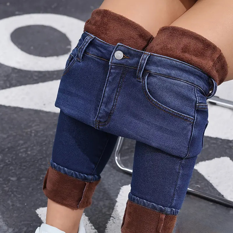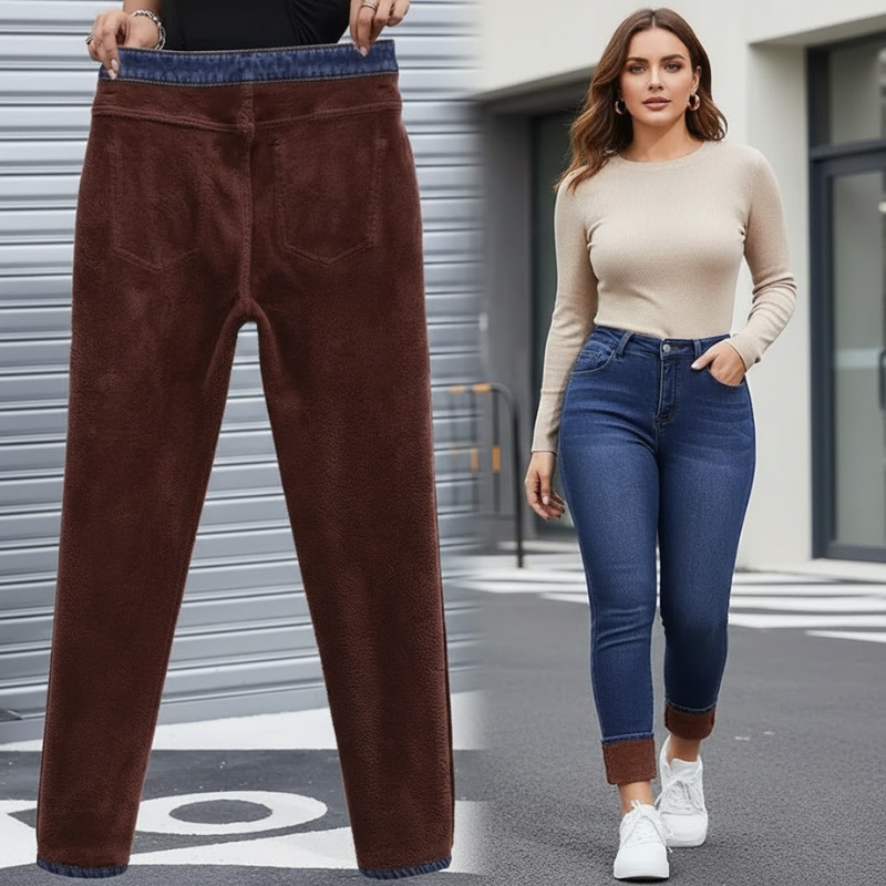 Jean Doublé Peluche – Anti-Froid, Ultra-Confort, Taille Haute