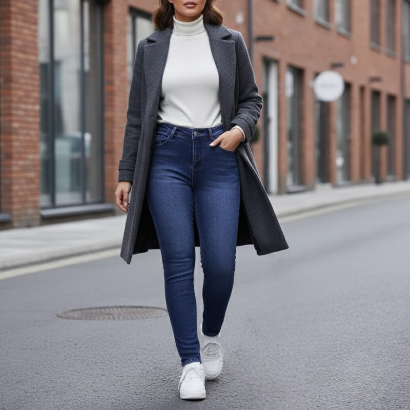 Avec leur taille haute gainante et leur coupe ajustée, ces jeans allongent visuellement les jambes et sculptent une ligne élégante. Le confort d’un legging, le style d’un denim premium.