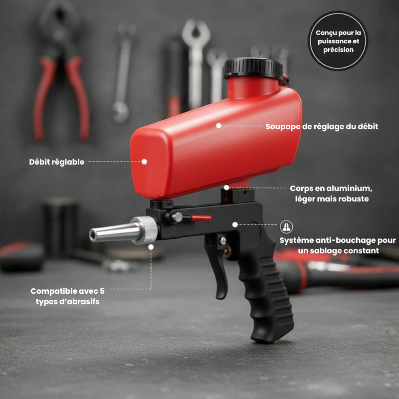 - Précision maximale : embout réglable pour un contrôle optimal du sablage.