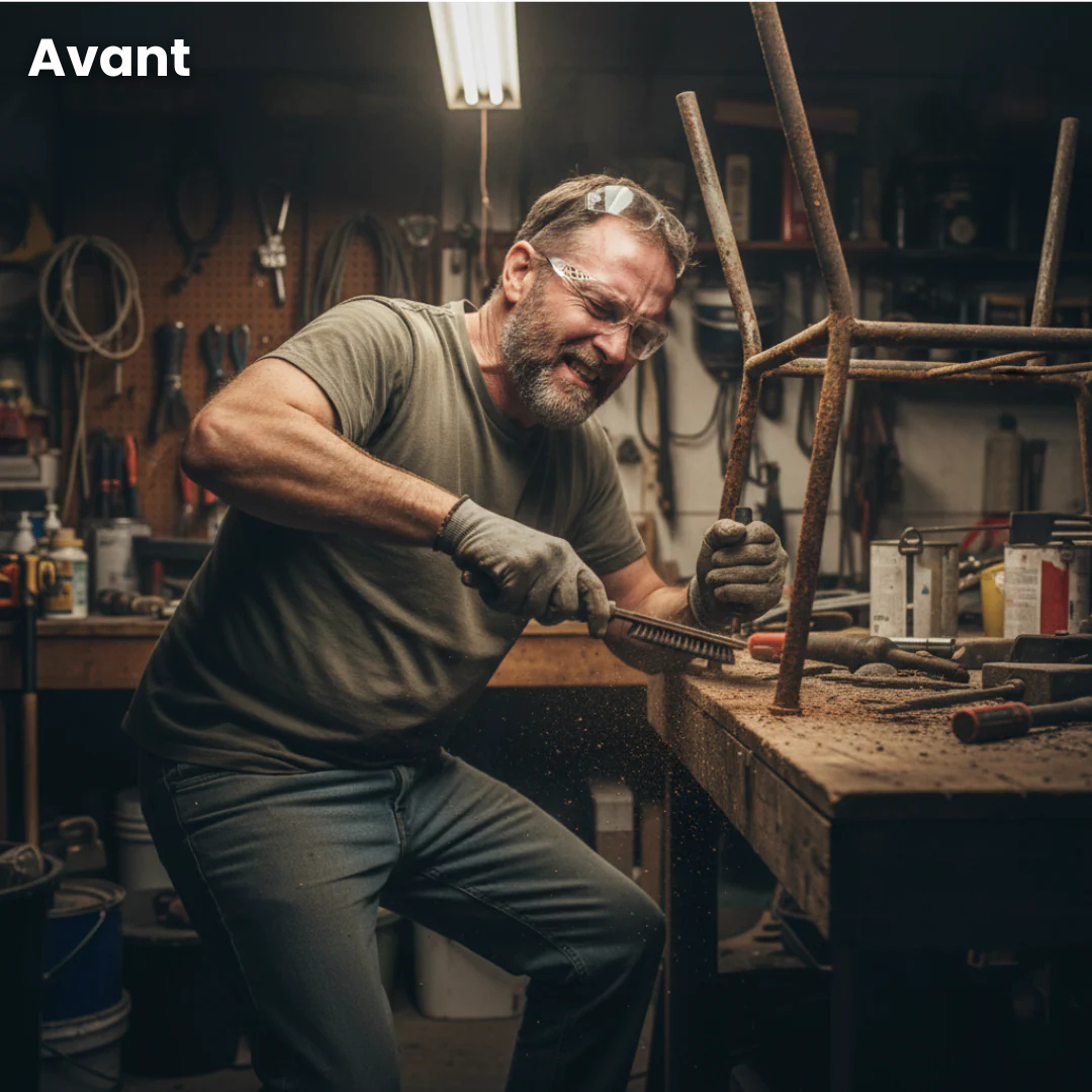 Avant le R20 PRO, restaurer le métal ou enlever la peinture était lent, salissant et épuisant.